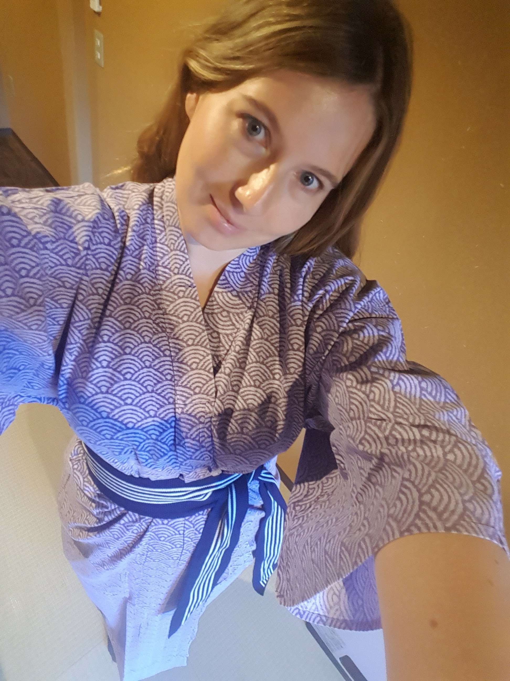 I love Yukata. They are so comfy and light enough that you don’t feel restricted. The cotton is extremely breathable. I was given instructions on how to wear it (left over right – the other way is how bodies are dressed for buried). You wear a Yukata over your underwear and can wear it everywhere in the Ryokan or even outside (if you’re in an onsen (hot spring) resort).