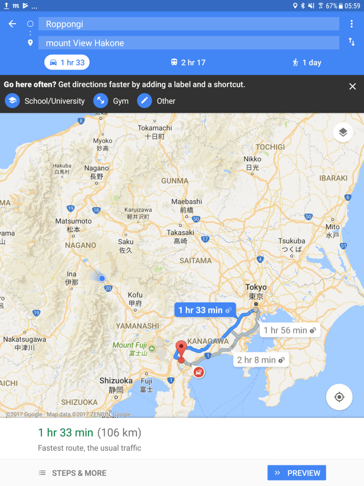 My journey yesterday took me from Tokyo to Odawara station and from there I took a 45 minute bus ride to Sengokuhara where my Ryokan – Mount View Hakone was situated.