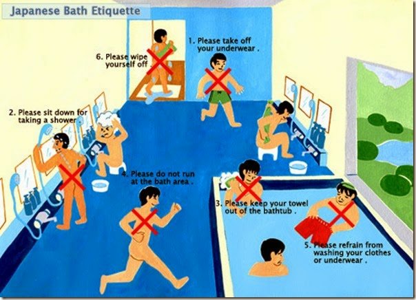 A) You don’t want to make the bath dirty and B) the baths are pretty warm (40°C) so it’s a good idea to prepare your body for the extreme temperature.