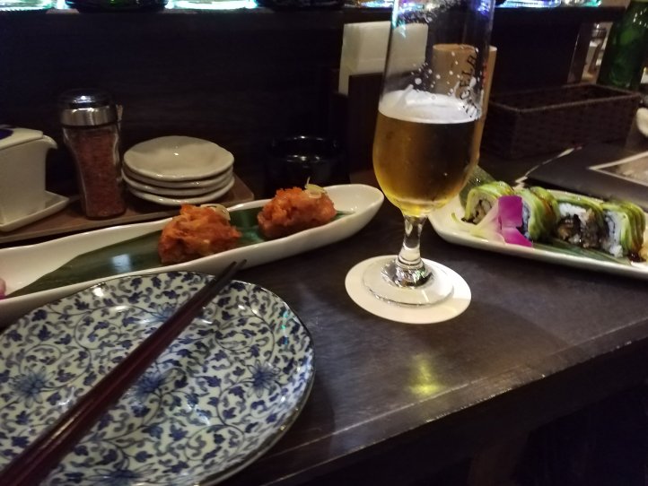 I headed back to the hotel to chill in the cafe and update my blog before moving towards a Sushi restaurant. The nearest one was two doors down and it was called “The Elbow Room”.