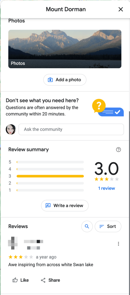 Unfortunately Mount Dorman only has a 3 Star review on Google – so this is something I of course need to change.