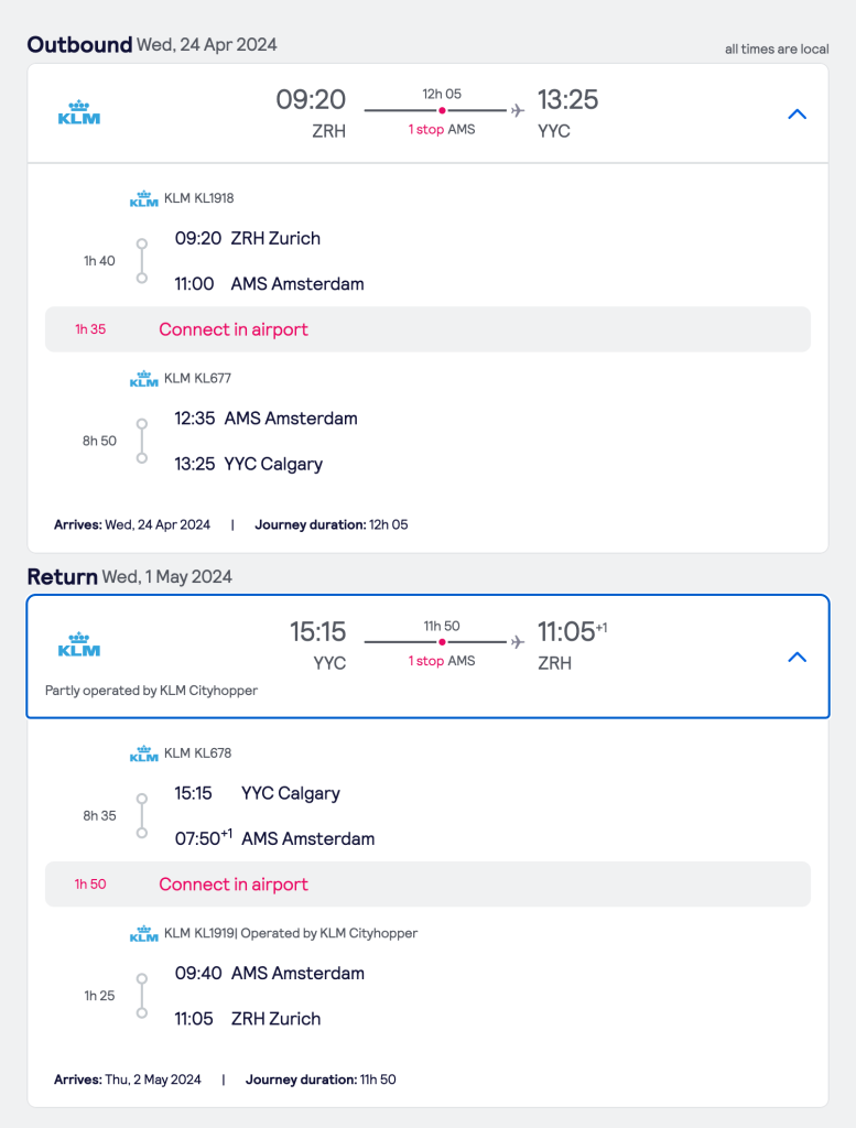 So my trip would be (business class of course…)